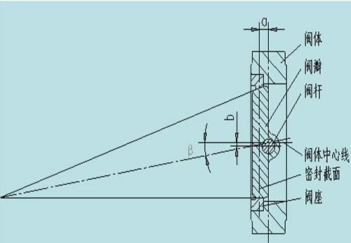 三偏心蝶閥的工作原理,在結構上蝶閥的閥體上有與管道相連的橫向閥口,閥口內有閥板,軸垂直于閥口穿在閥體與閥板內。該閥板的邊緣設置外球面,在閥口上設置可以與外球面配合的密封面,密封面與外球面配合密封時形成密封線與軸的軸心間有偏心距a,在閥板的橫向中心線即閥口中心線與轉軸的中心線間有偏心距 b,在外球面的連線與閥口的中心線間有夾角,這就是三偏心蝶閥的原理。