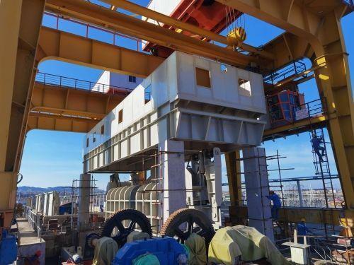 3月3日,塔吉克格拉夫那亞水電站技改工程溢洪道雙扉門啟動(dòng)吊裝,歷經(jīng)40分鐘,穩(wěn)穩(wěn)吊入預(yù)定位置,大壩溢洪道雙扉門及鏈條式啟閉機(jī)更換工程步入新的節(jié)點(diǎn)。本次溢洪道鋼平臺(tái)的吊裝成功極大的降低了即將到來洪水期漫壩的風(fēng)險(xiǎn),待鋼平臺(tái)微調(diào)固定后即可對(duì)鋼平臺(tái)的機(jī)械及電氣設(shè)備進(jìn)行安裝與調(diào)試并投入使用。