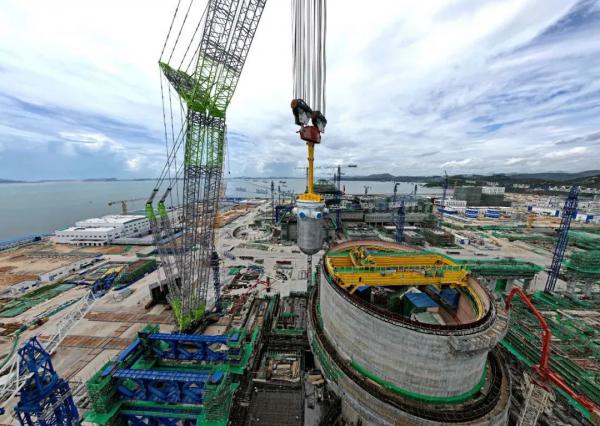 8月9日,我國自主三代核電華龍一號批量化工程——中核集團漳州核電2號機組反應堆壓力容器順利吊裝就位。這是該機組繼三臺蒸汽發生器吊裝成功之后,主設備預引入工作再次取得的重大進展,為后續內穹頂吊裝及主管道焊接創造了先決條件。