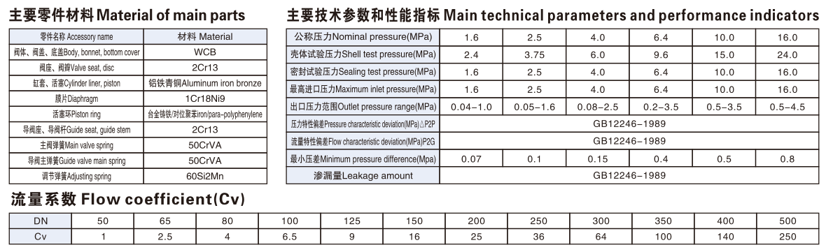 二、Y43H蒸汽減壓閥主要技術參數和性能指標