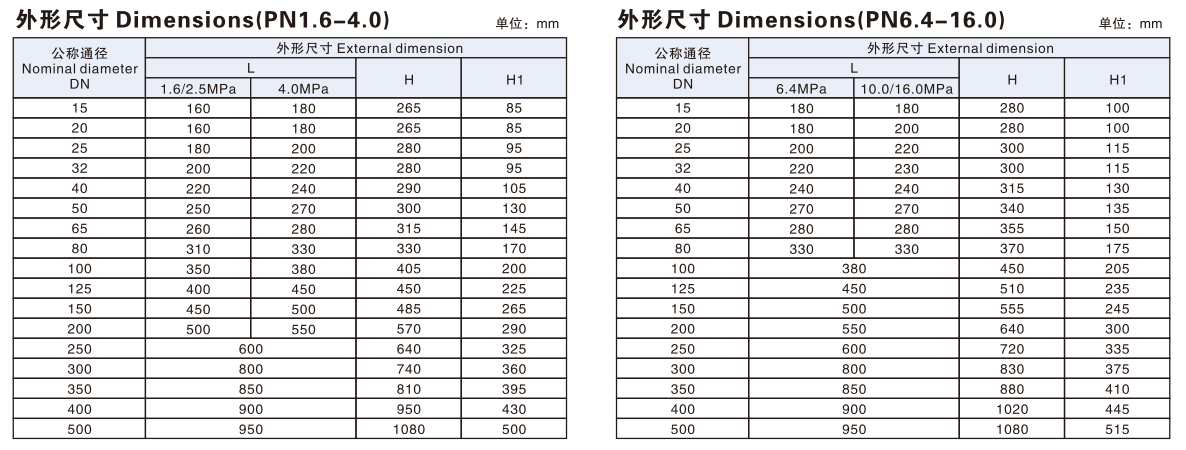 密封試驗壓力(Mpa) 1.6 2.5 4.0 6.4 10.0 16.0