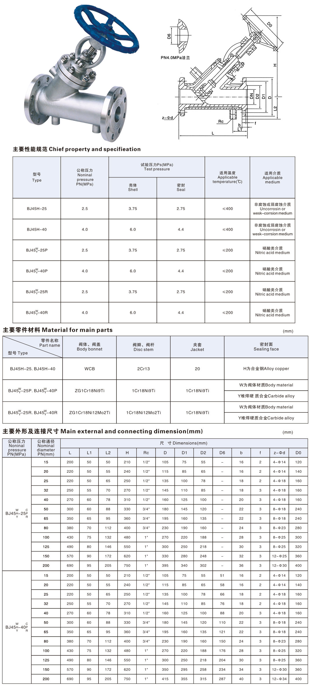 BJ45W-25P、BJ45W-40P、BJ45W-64P 鉻鎳鉬鈦鋼 鉻鎳鉬鈦鋼+硬質合金 聚四氟乙烯